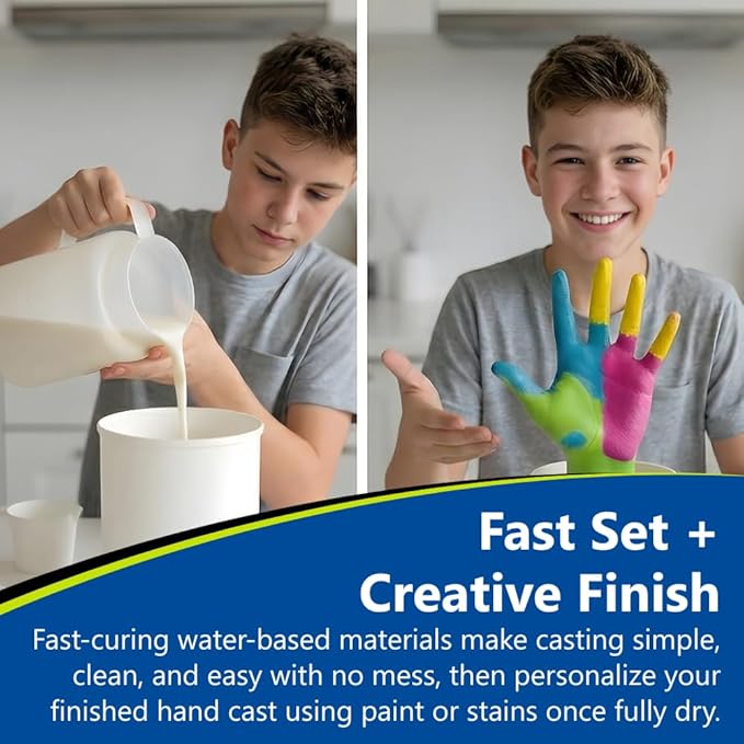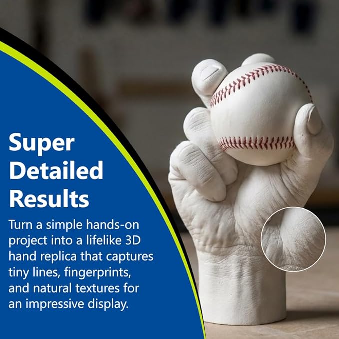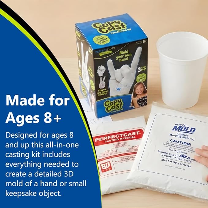 ALL-IN-ONE CASTING KIT FOR AGES 13+: Includes everything you need to create a lifelike 3D mold of your hand or favorite small object: premium alginate molding powder, durable casting material, mixing bucket, and step-by-step instructions; American-made with safe, non-toxic materials