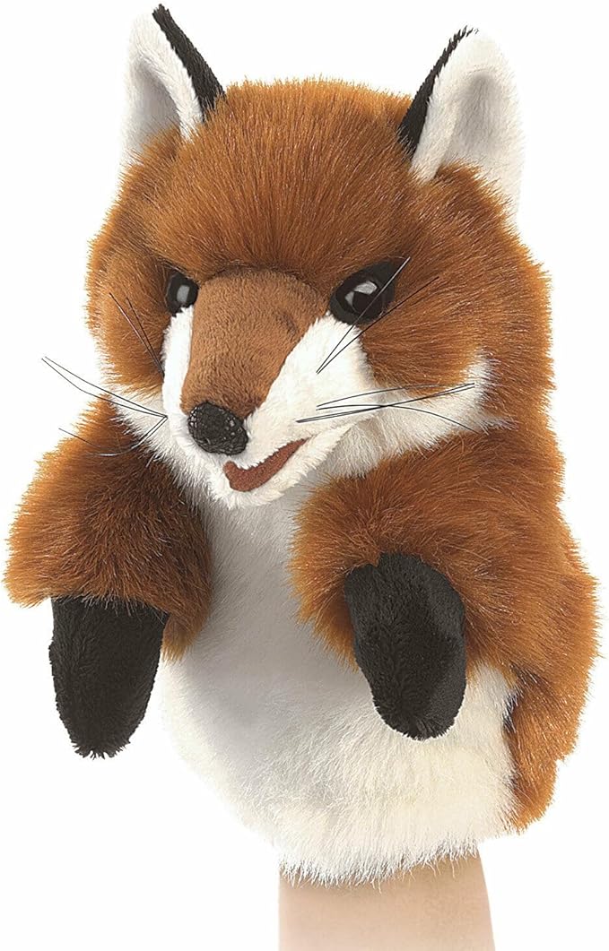 Folkmanis Little Fox Hand Puppet, Red/Dark Brown/White, 8"