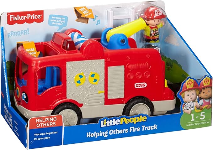 Fisher-Price Little People Toddler Toy Helping Others Fire Truck with Music Lights & Figures for Preschool Pretend Play Kids Ages 1+ Years