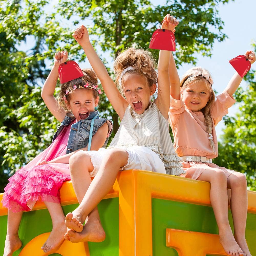ArtCreativity 3 Inch Red Metal Cowbell Noisemakers - Pack of 12 - Loud Metal Cowbell Noise Makers with Handles, Great for Football Games, Sporting Events, New Year’s Eve, for Kids and Adults