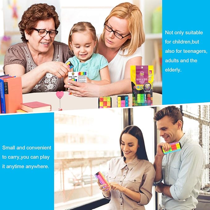 【 Uses 】Unlike other brain games,the patented,critically acclaimed cube puzzle is a unique toy and unique gift,it is a combination of rotating magic cube and slide puzzle,each puzzle piece can be rotated from up and down with a whole column around the axis as well as be slided left and right on a row