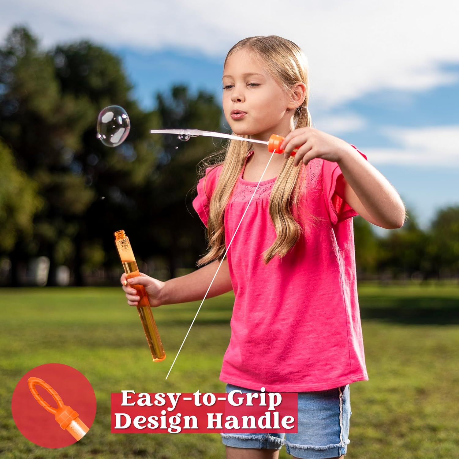 VARIETY. Each 24-pack contains 4 Yellow, 4 Blue, 4 Pink, 4 Green, 4 Red, 4 Dark Blue color 14’’, 4 oz Giant Bubble Maker with an Easy-to-Grip Design Handle.