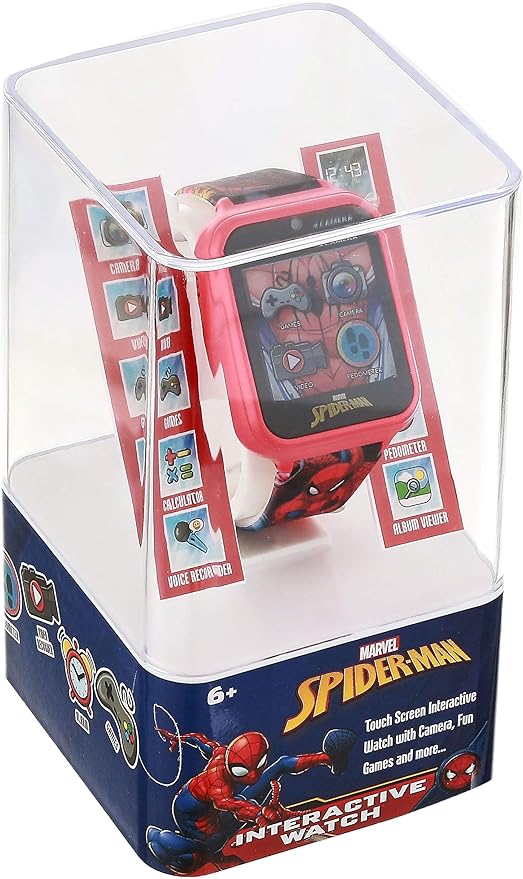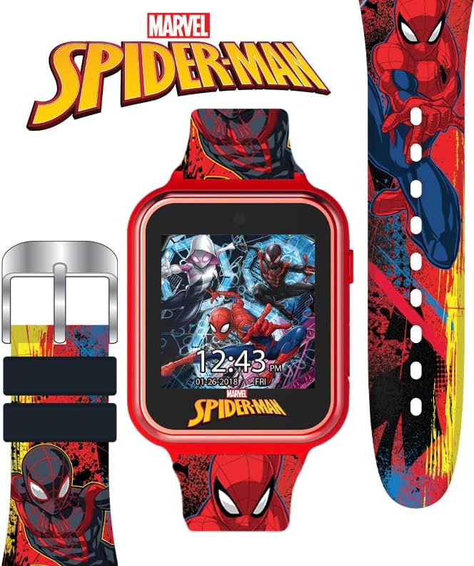 Interactive Spider-Man-themed smartwatch featuring bold printed silicone straps and superhero designs
