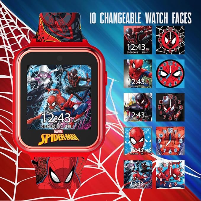 Spider-Man Kids Smartwatch - Interactive LED Screen with 10 Custom Watch Faces, Camera, Games, Alarm, Step Tracker & More - Fun Gift for Boys with Marvel Silicone Strap - Fits Wrists 5.5'' to 8.0"