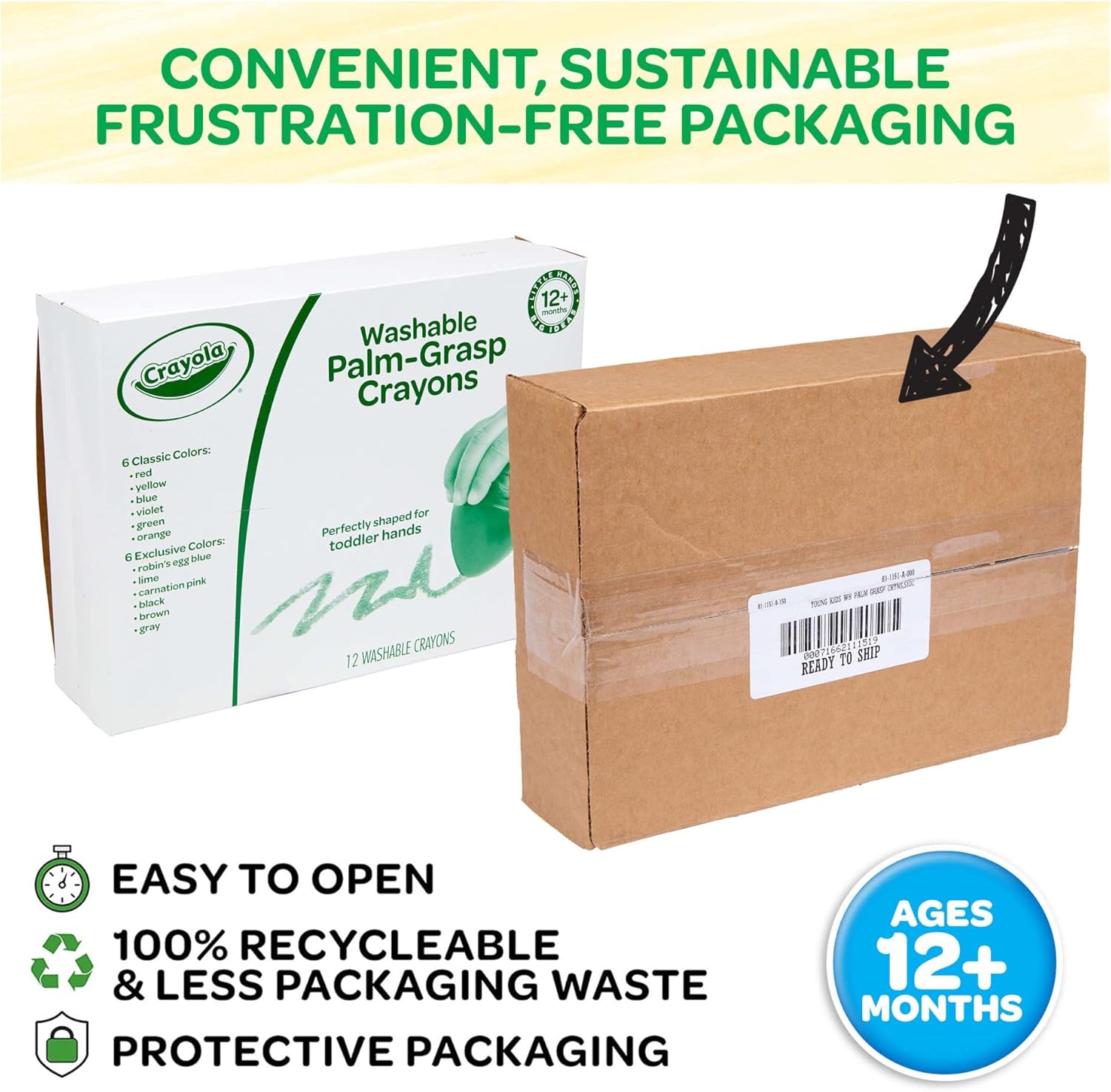 CRAYOLA TODDLER CRAYONS: Features 12 large Palm Grasp Egg Shaped Crayons for toddlers.