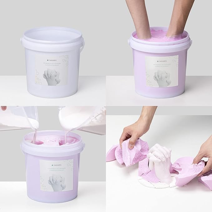 PRODUCT DETAILS: The set includes 1.2 lbs alginate powder, 2.2 lbs plaster powder, and 0.8 gallon bucket. Suitable for 2 adult hands and 1 child's hand. Ph-neutral. Safe for skin.