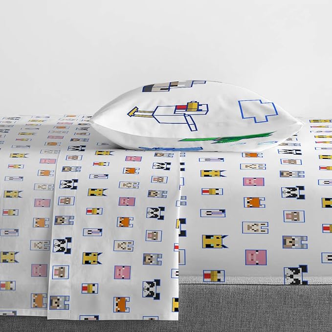 Jay Franco Minecraft Animal Patch 5 Piece Twin Bed Set - Includes Comforter & Sheet Set Bedding - Super Soft Fade Resistant Microfiber (Official Minecraft Product)