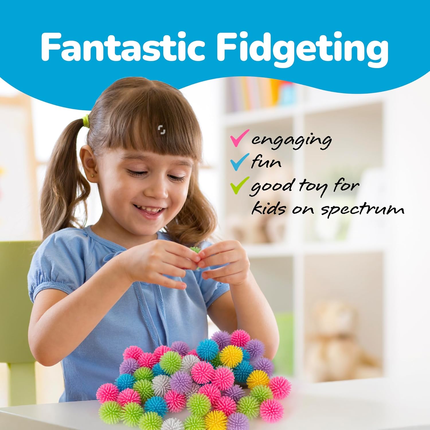FANTASTIC FIDGETING: Keep your hands busy and your face smiling with these soft, spikey sensory balls! Every bulk pack comes with 144 spiky balls for kids and adults to give you a great bang for your buck. Perfect as a sensory bin filler, each sensory ball measures 1” for pocket-sized portability.