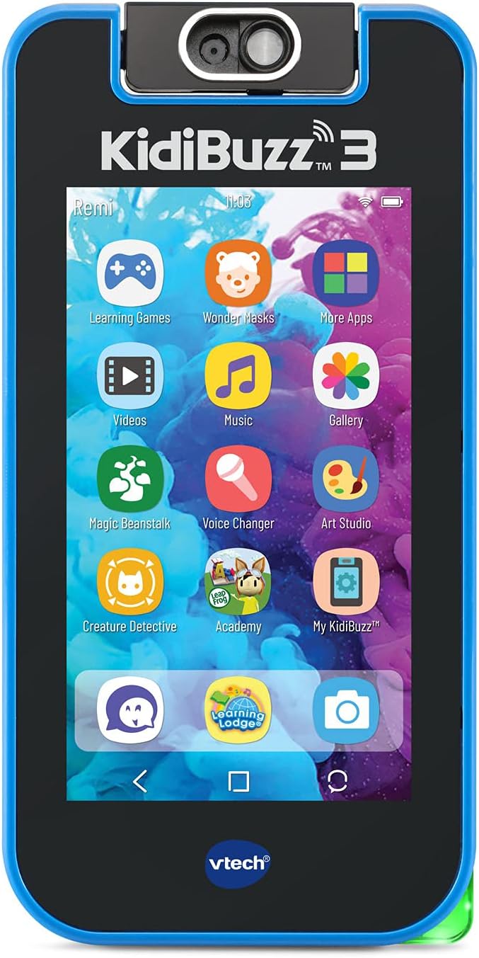 • Share short video clips, text messages and photos over Wi-Fi with parent-approved contacts to other KidiBuzz devices and iPhone or Android smartphones with the free KidiCom Chat app