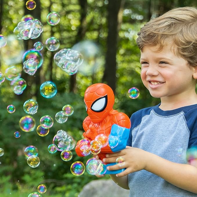 Spider-Man Action Bubble Blower is the perfect blend of fun character presence while working like a bubble machine to blow tons of bubbles