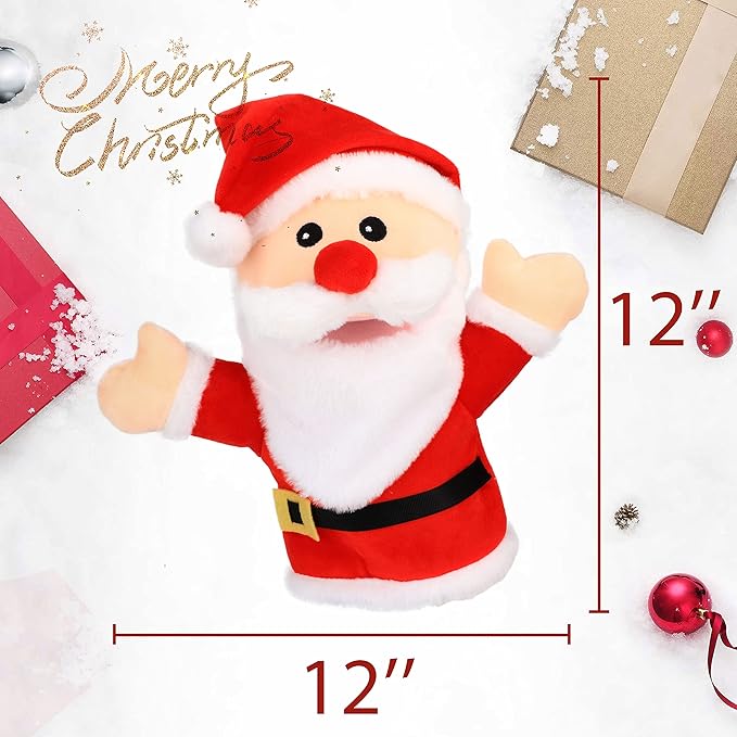 Hopearl Plush Christmas Santa Claus Hand Puppet with Open Movable Mouth for Imaginative Play, Role Play, Interactive Toy for Storytelling Teaching Puppet Theater, Gift for Kids Boys Girls, Red, 16''
