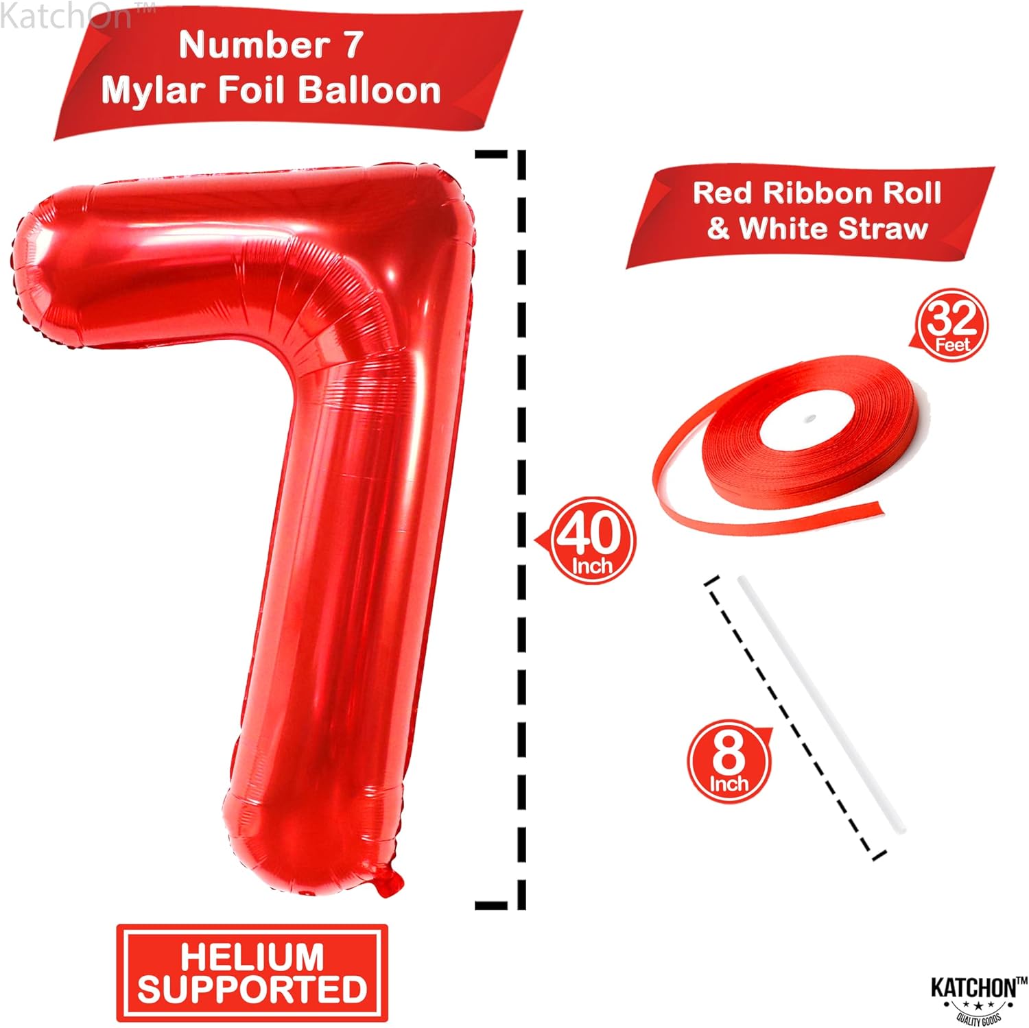 GIANT SIZE - 40 INCH | HELIUM SUPPORTED : Planning to celebrate your kid’s 7th birthday? This giant Red Number 7 Balloon is ideal for 7th birthday decorations boy or 7th anniversary balloons. It comes with an 8 inch white straw and 32 foot ribbon roll. Decorate with large number 7 balloon red, 7 year old birthday decorations red, 7 year birthday balloons, 7th birthday monster truck decorations