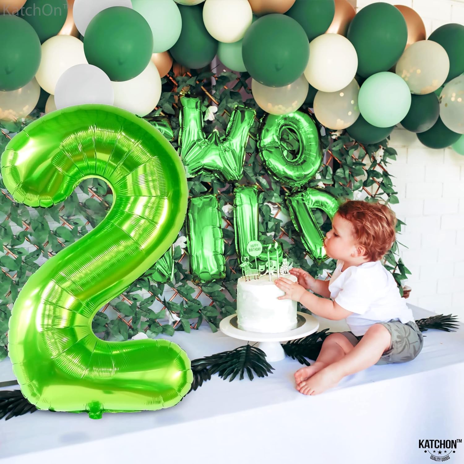 KatchOn, Light Green 2 Balloon Number - 40 Inch | Green Number 2 Balloon for Two Rex Birthday Decorations Boy | Green Two Balloon | 2 Year for Dinosaur Party Decorations 2 Year Old Boy