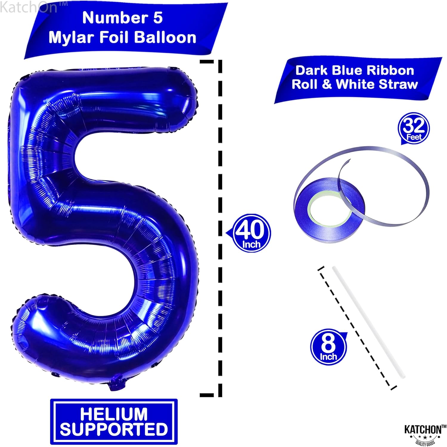 KatchOn, Navy Blue Number 5 Balloon - Big, 40 Inch | 5th Birthday Decorations for Boys | 5th Birthday Boy | Balloon For 5th Anniversary Decorations, Fifth Birthday Decoration Boy