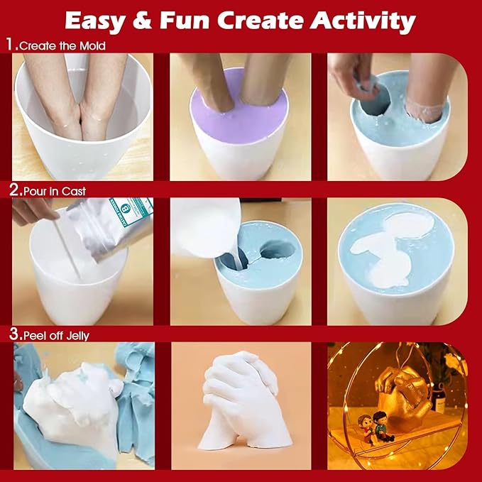 Preserve Precious Memories: The highly-quality molding powder and casting powder can capture each fineline and fingerprint, it is great keepsake for couples to preserve precious memories. Perfect for enjoy making activities on anniversary, date night, wedding, mothers day/grandma, family, valentines, birthdays, holidays .