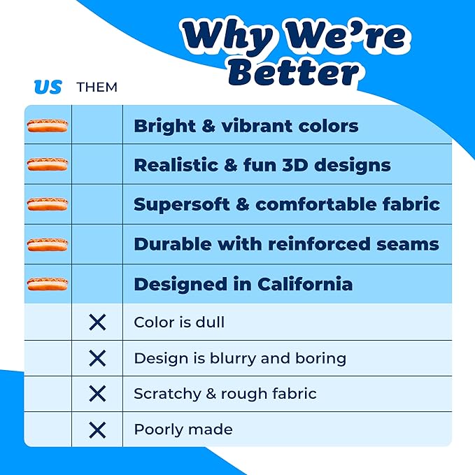 COLLECT THEM ALL: We offer the softest, cutest throw plush pillows around! Collect all the breads, bundle a cheeseburger, pickle, and hotdog, or snatch up the sweetest pair - donut and cinnamon bun. You'll have so much fun with these playful designs.