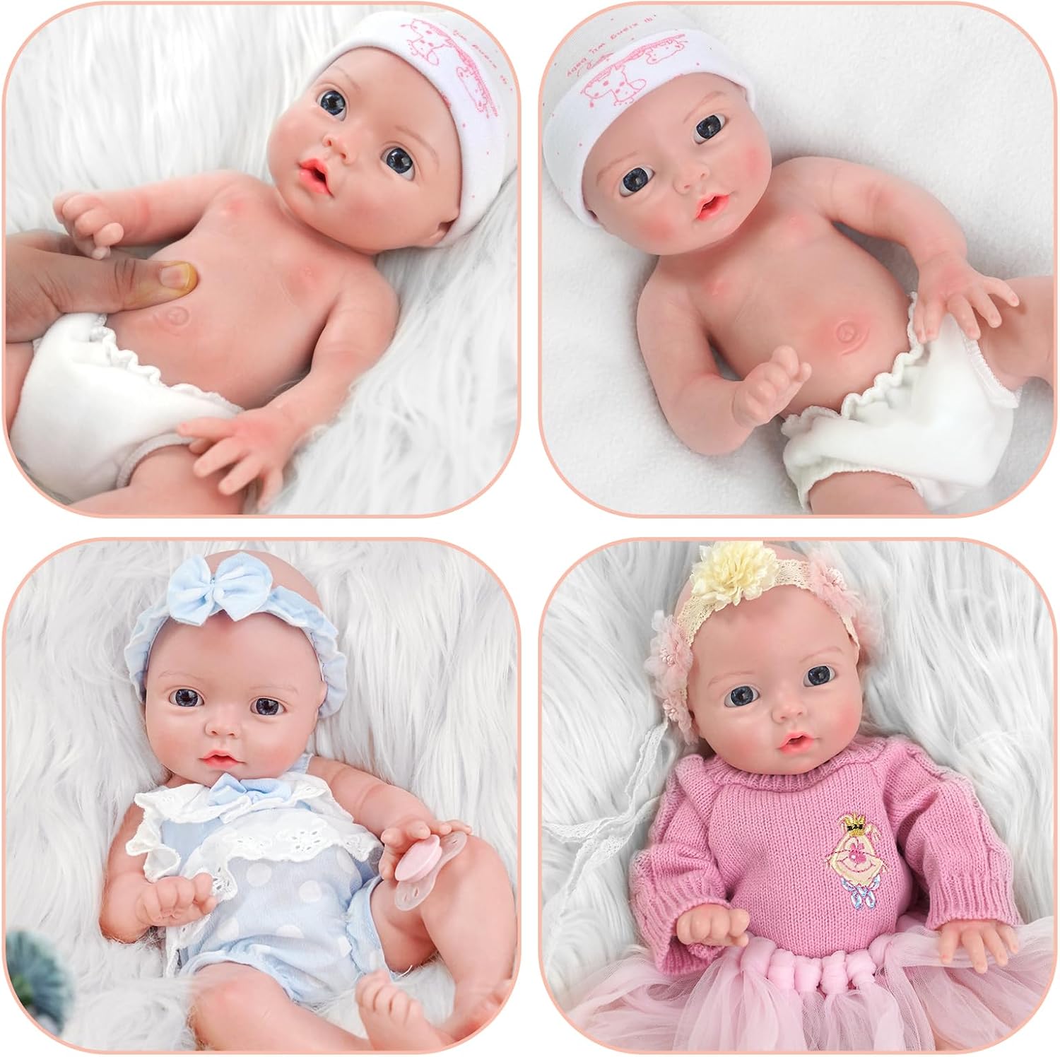 BABESIDE Lifelike Reborn Baby Dolls Silicone Full Body - Girl 12 Inch - Realistic Baby Dolls Newborn Full Body Silicone Real Life Baby Doll for 3+ Years Old Girls Gifts