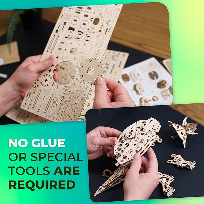 Wind-up Functionality Dinosaur Craft: Crafts for adults wooden animal puzzle DIY kits for adults includes a winding key between the shoulder blades, making it easy to bring the dinosaur to life