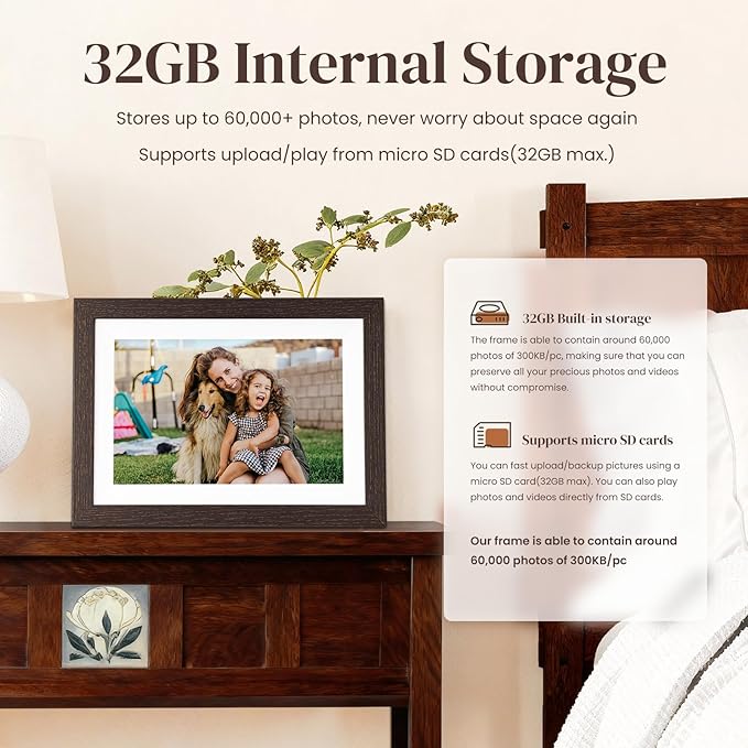 【Excellent Memory Displaying Experience】The enhanced 10.1’’ IPS touchscreen with 1280x800 resolution delivers vibrant colors and crystal-clear clarity. With an expanded 32GB storage capacity, you can preserve every treasured moment without ever worrying about space. We are dedicated to elevating your photo-sharing experience and keep every smile in stunning detail.