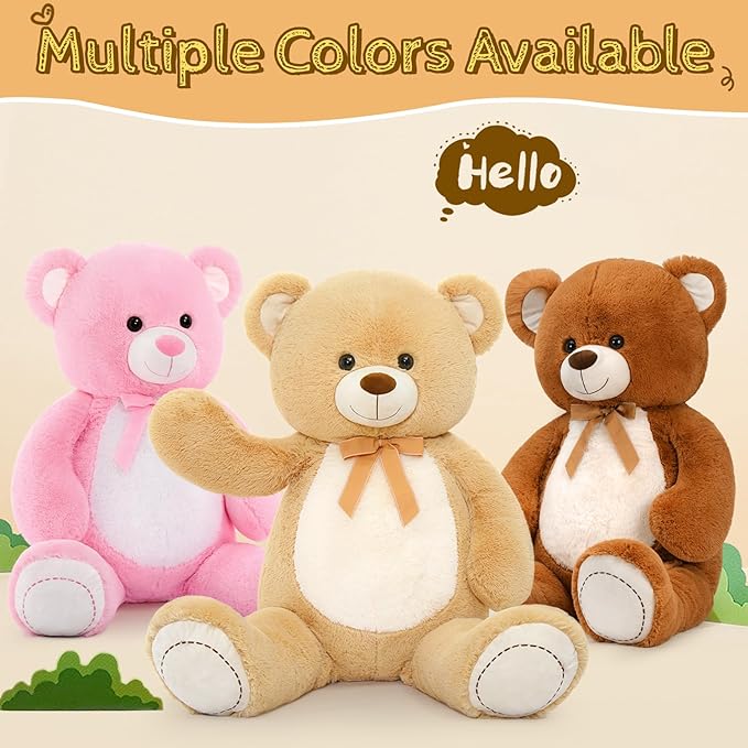Best Gift & Decor: Perfect for birthday, Valentine's Day, Halloween, Thanksgiving, Christmas, or any other holiday. Send this large teddy bear stuffed animal plush toy to boys, girls, kids, teens, adult, friend or lover. Also human size teddy bear can be the perfect gift for girlfriend and baby shower decoration, gender reveal or House-warming party.