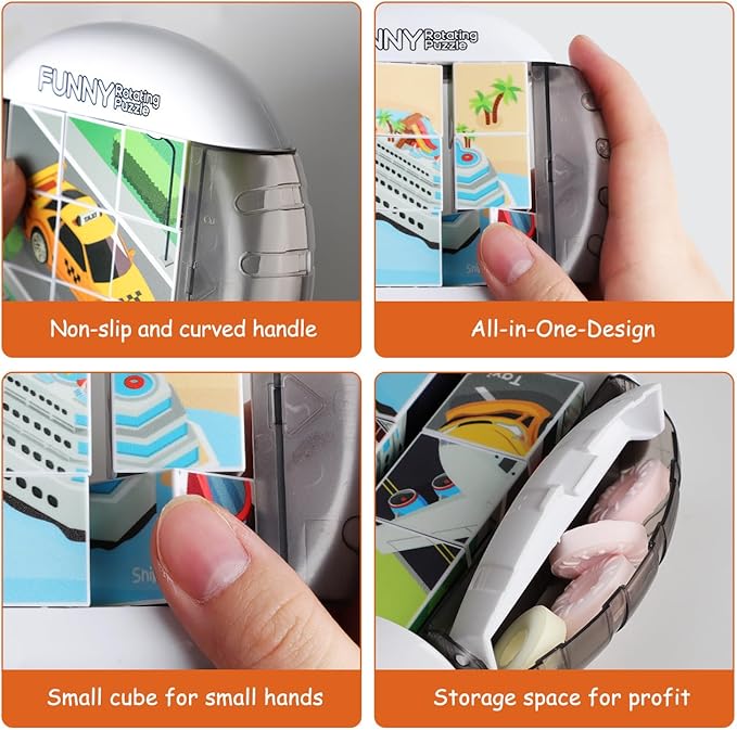 A HANDY TOY FOR OUTINGS - Whether in the car or at a restaurant, our compact Rotating Puzzles can be carried along and it keeps children quiet and occupied. Moreover, there is no risk of missing pieces after playing with this all-in-one design puzzle!