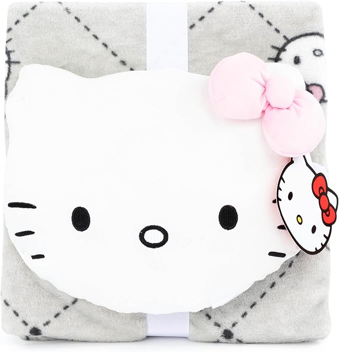 PERFECT FIT & FUN DESIGN - Throw blanket measures 50 x 60 inches and pillow measures 12 inches. Add a touch of decorative enchantment to any bedroom with our fashionable and super soft set. It's fun and cool design is sure to be a hit with any Hello Kitty fan!