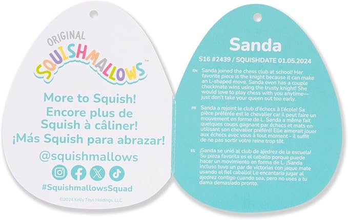 Each Squishmallows comes with a unique name and bio. Sanda is a member of chess club!