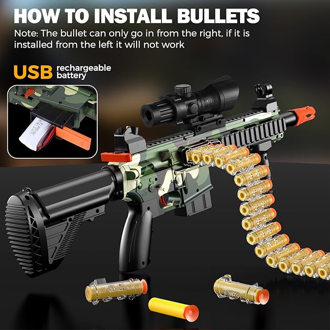 • [Automatic foam blaster] This electric toy gun has three shooting modes: Automatic burst, automatic single shot, manual mode. The high-speed motor, fires soft bullets that can reach 30-40 feet. It comes with a rechargeable battery and usb charging cable and has been recognized for its performance and quality.