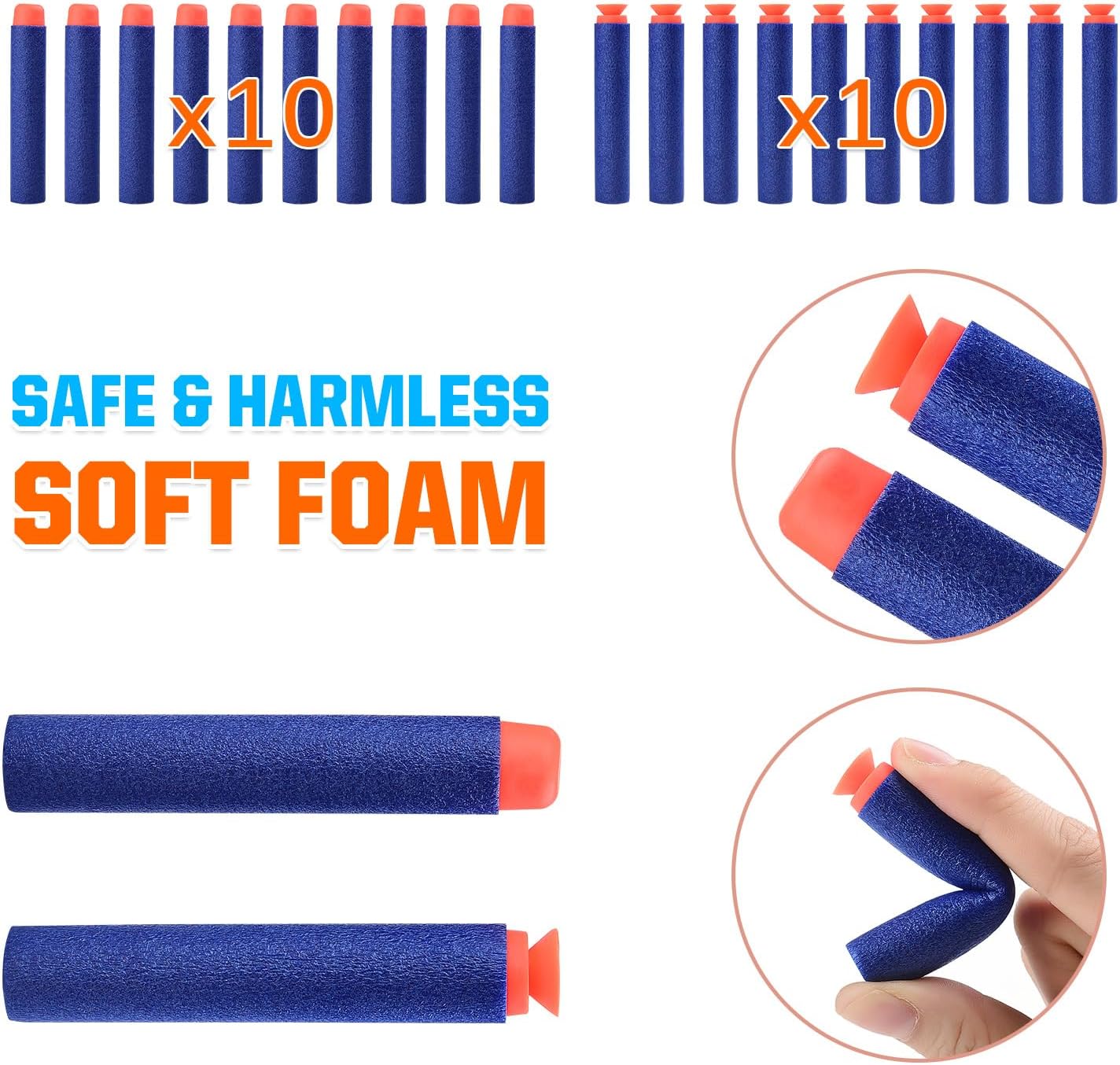 20 Soft Foam Darts: The guns multipack includes 10 round-tip darts and 10 suction darts that stick to smooth surfaces, adding an extra element of fun to shooting practice
