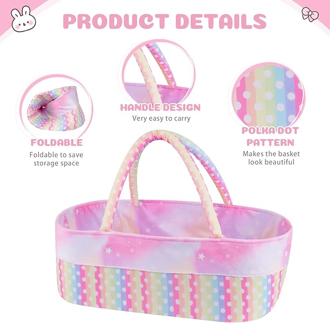 BABY DOLL BASSINET: The colorful dot design baby doll bassinet which is easy to carry, durable, and has a large space, which can hold 17-22 inch babydolls, doll clothes and doll accessories, so that making it easy for kids to play everywhere