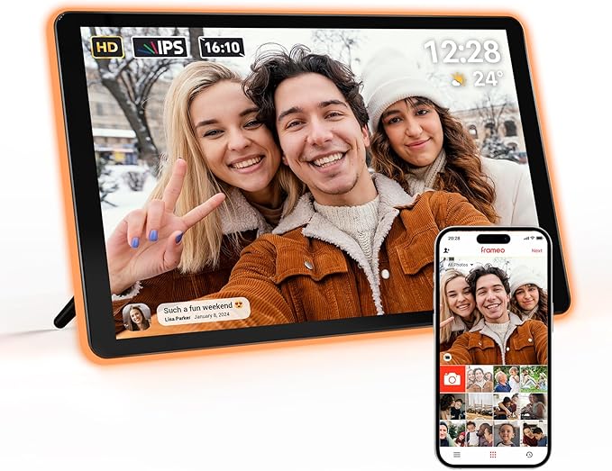 [Experience Stunning Visuals]: Step into a world of vibrant detail and crystal-clear images with the Apolosign Neon Light digital photo frame. Featuring a 16:10 aspect ratio and a 1280x800 Full HD 2.5D glass touch screen, this frame delivers exceptional clarity and immersive depth. The advanced 2.5D glass lamination ensures that every photo you display comes to life with enhanced brightness and vivid detail.