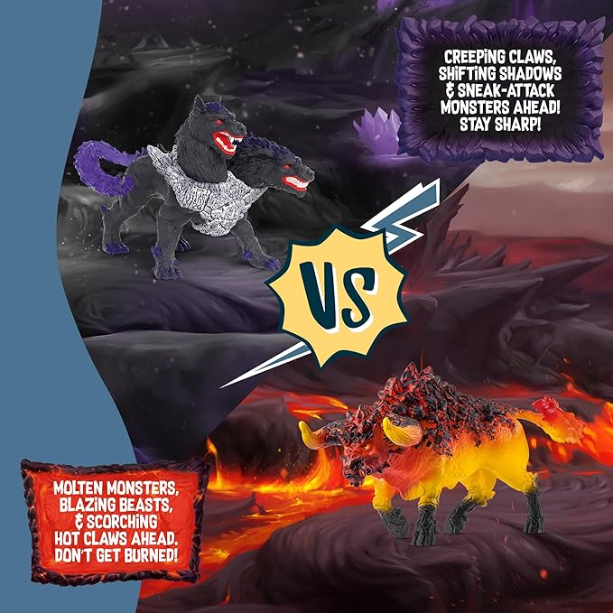 Schleich Eldrador Creatures - 71 PC BattleCave Arena Lava Vs. Shadow Playset - Lava Bull and Shadow Hound Set - Animal Monster Figurines for Boys and Girls - Fun Beast Toys for Kids Ages 7+ | 42673