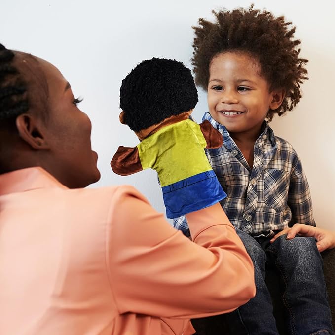 1 Pcs Family Hand Puppets 12 Inch Grandparents, Mom & Dad, Brother & Sister Plush Hand Puppet Toys Role-Play Toy Puppets for Kids Storytelling Imaginative Pretend Play Teaching Preschool(Black Bro)