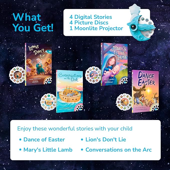 Moonlite Bible Stories for Kids Collection (4 Pack), Dance of Easter, Lions Don't Lie, Mary's Little Lamb, Conversations on The Ark, Reels for Book Projector, Kids Learning Gifts