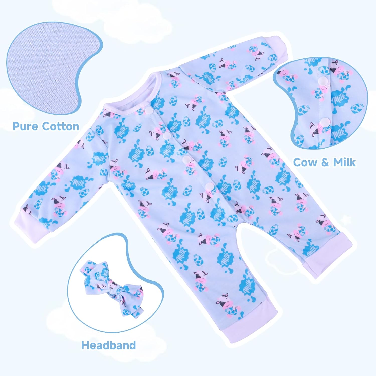 PACKAGE INCLUDE - Our 5 pcs reborn baby doll clothes set comes with 5 food theme onesies. ATTENTION: Doll is NOT included.