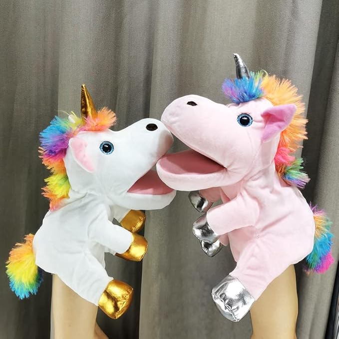 Hopearl Plush Unicorn Hand Puppet with Open Movable Mouth for Imaginative Play, Role Play, Interactive Toy for Storytelling Teaching Puppet Theater, Birthday Gifts for Kids Girls, Pink, 12''