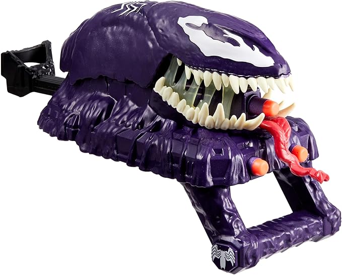 VENOM-INSPIRED DESIGN: Inspired by Marvel’s Venom, this blaster features cool and creepy Venom details, including a stretchy “saliva” effect when the mouth opens