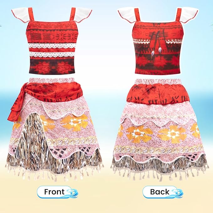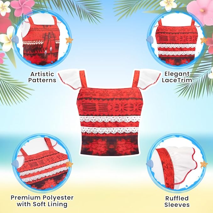 • Artistic Print Design and Multi-Layered Irregular Skirt with Vibrant Color. Red is a passionate color, the top of the toddler dress up clothes has folk art patterns, lace trim makes princess elegant. The skirt is multi-layered with elastic waist and flowing tassels, the hidden golden plumeria on the skirt echoes with the hair clip, everything is the most attractive design and will be a great hit for girls.