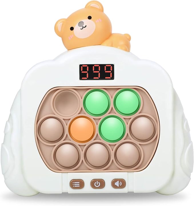 Quick Push Pop Game Fidget Toys, 12 Modes LED Screen Light Up Fast Push Bubble Game, Handheld Speed Pushing Game, Christmas Toys Gifts for 6 7 8 9 10 11 12 Years Old Kids Stocking Stuffers(Bear)