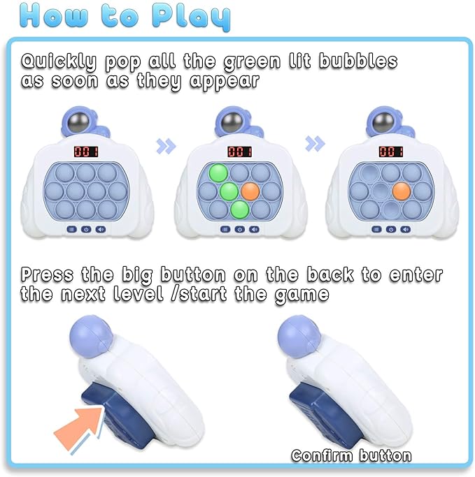 Quick Push Pop Fidget Toys for Kids & Adults, 12 Game Modes Upgraded Light Up Fast Push Bubble Handheld Toy, Stress Relief & Party Favors, Christmas & Birthday Gifts for 3-12 (Astronaut)