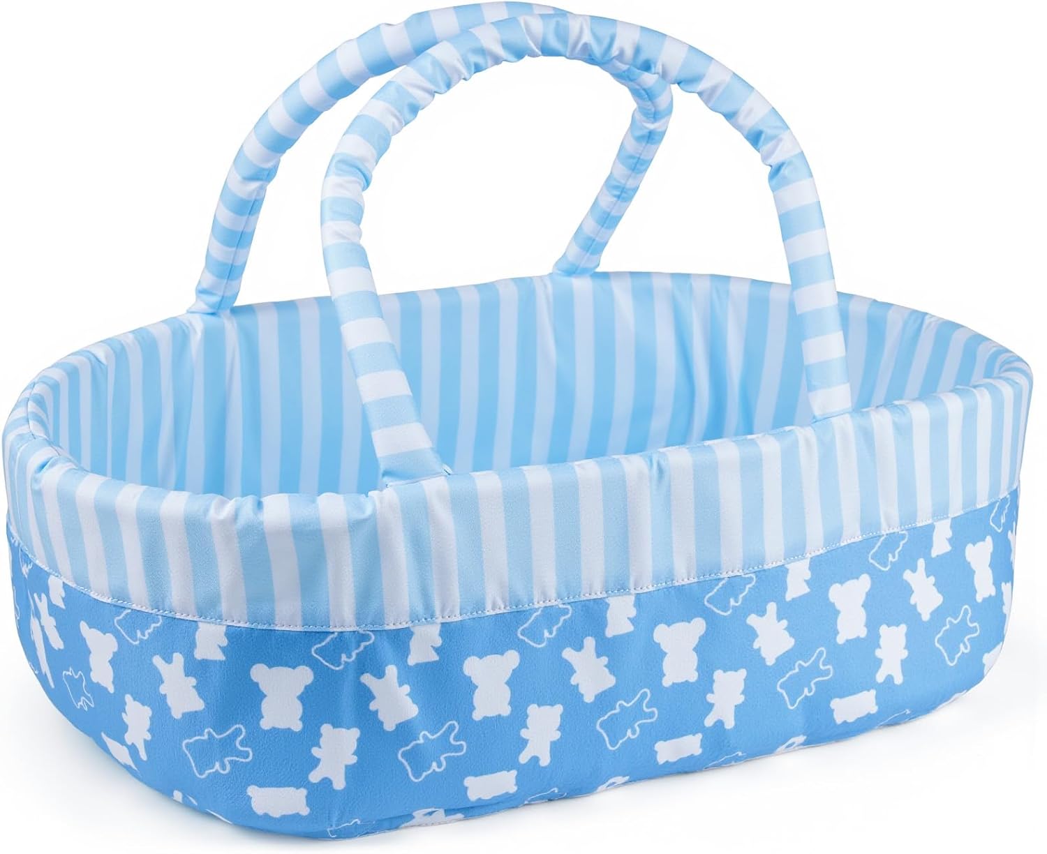 Foldable Baby Doll Bassinet: The babydoll bassinet with cute bear print is ironable, durable, has a large space and easy to carry, it can hold reborn baby doll and baby doll accessories, convenient for children to store their favorite baby dolls and doll accessories