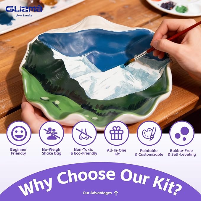 【Safe & Sustainable】 – Glizma's Eco Craft Kits for Adults is fast-curing, odorless casting powder which is perfect for Date Night Painting Kit for Couples or Girls Night. Experience the joy of crafting with our water-activated, easy-mix formula, and create durable, beautiful home decor bowls that can add nautical elegance to your home, without exploiting any bit from our oceans.