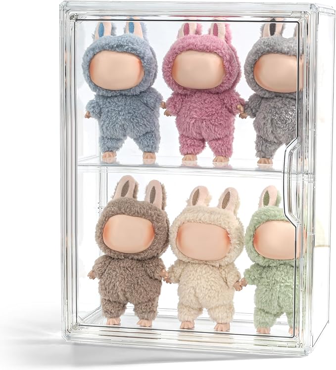 Size & Compatibility: The display box measures 14”x10.5”x5.5”, perfectly compatible with regular size labubu, labubu plush keychain, labubu macron series and more. One display box can hold 6 dolls at a time.