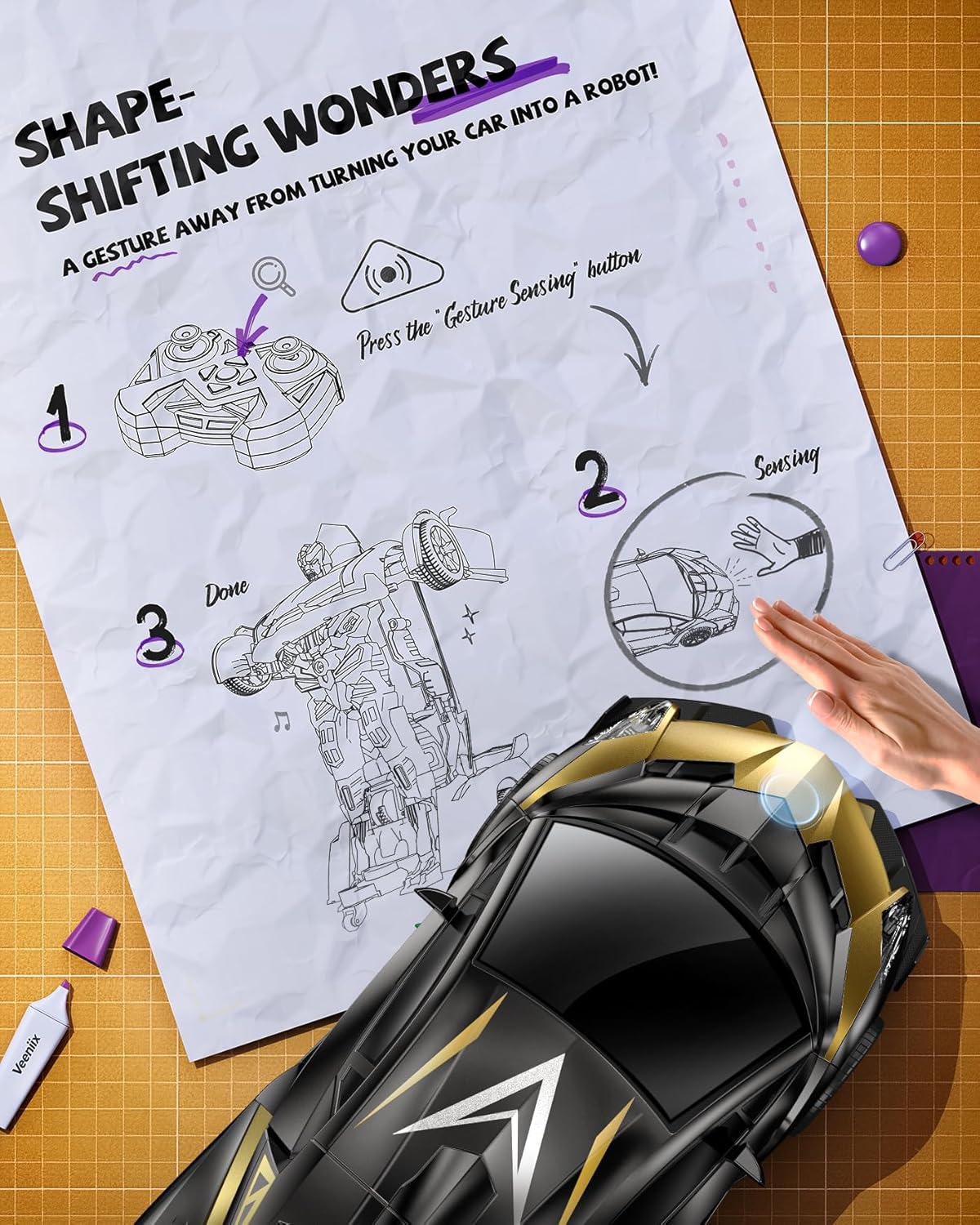 Smart Interactive Play:Gesture-sensing transformation, automatic demonstrations mode, and dynamic LED lights with music for an immersive experience.