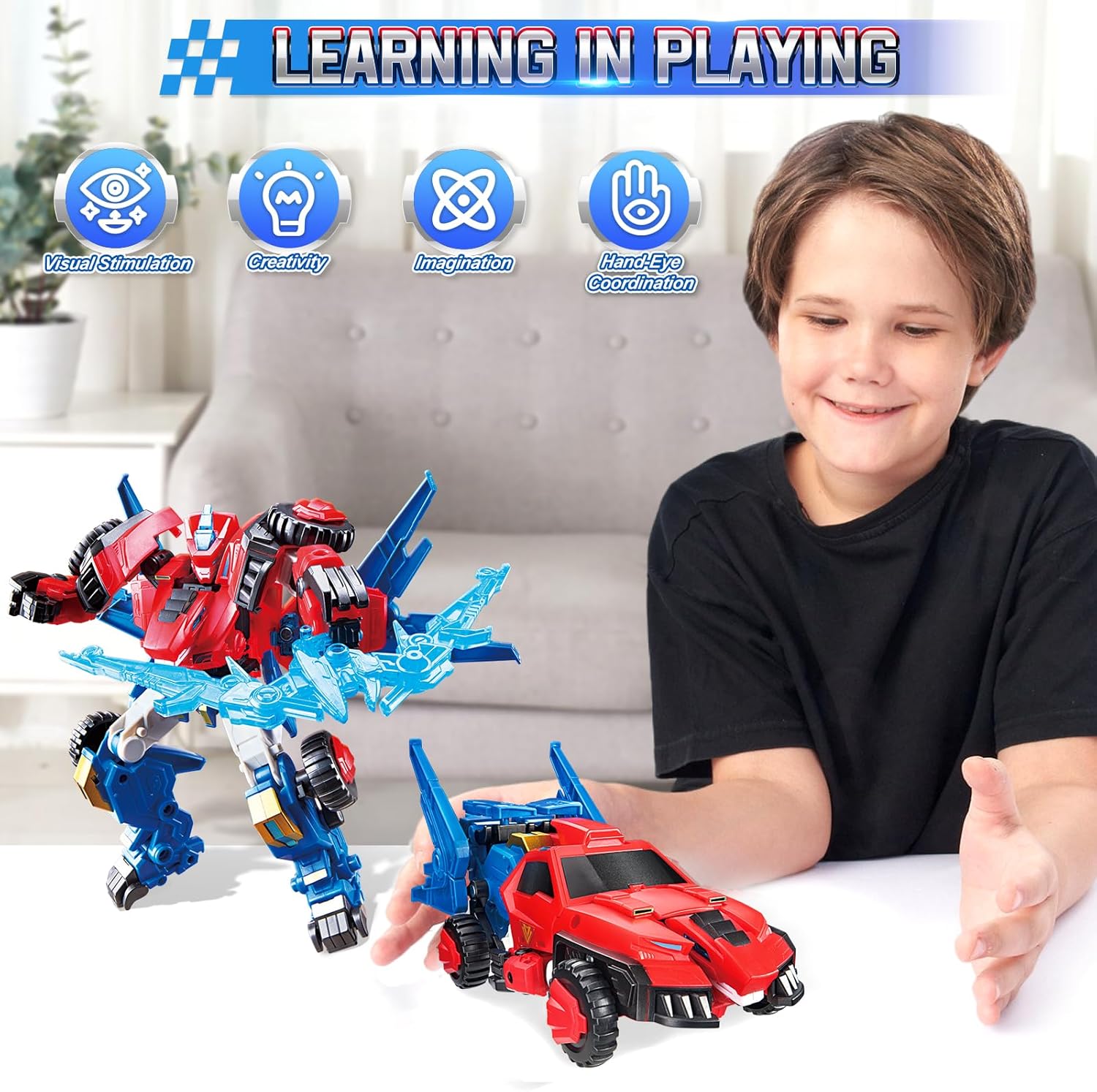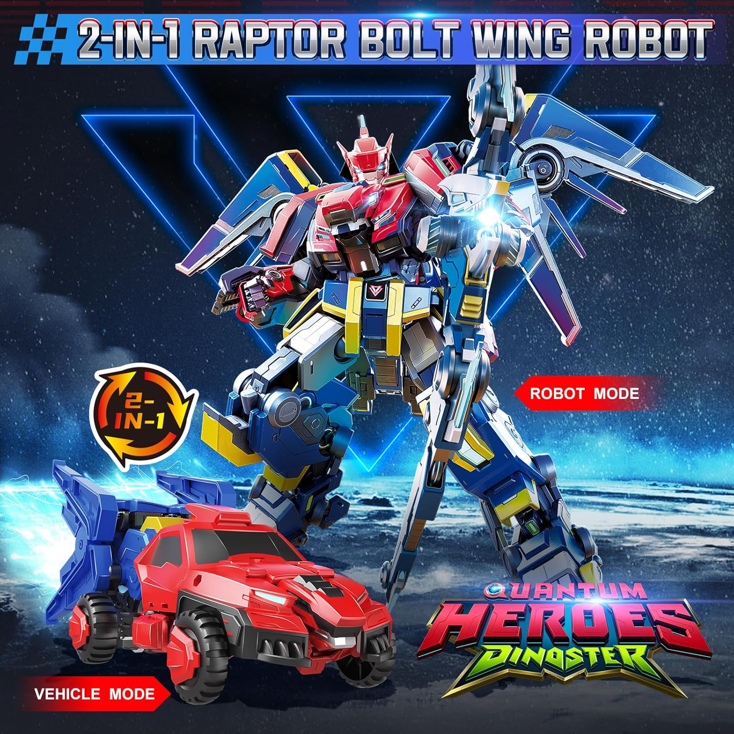 Transformable Robot 2 in 1 Raptor Bolt Wing, 8.66 inch, Transforming Robot Toy for Kids , Chariot Transforming Toy for Boys Girls 5 6 7 8 9 10 Years, Red Blue