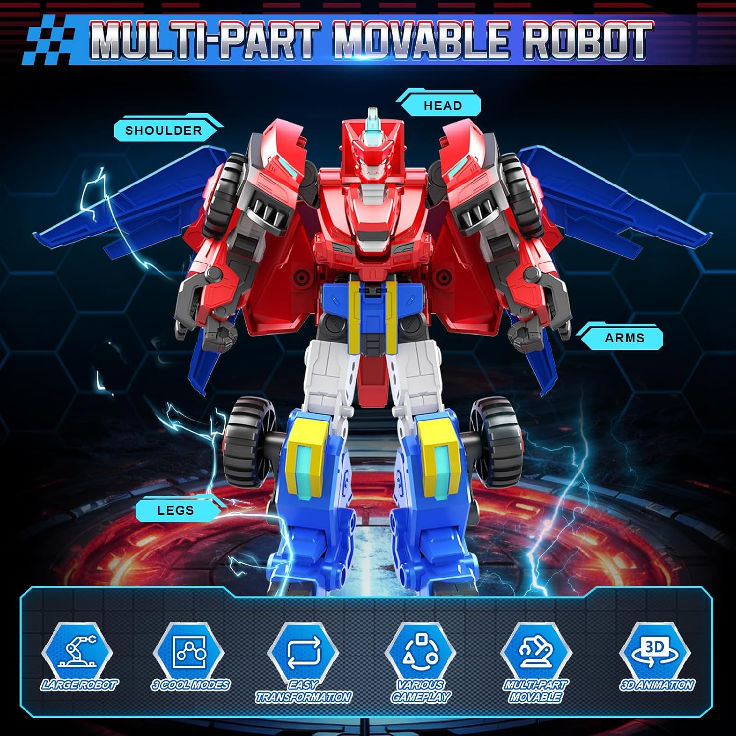 NEWLY UPGRADED: Raptor Bolt Wing transforming robot stands 8.66 inches tall and is made of upgraded ABS material and technology for a smooth, shiny surface and fine workmanship for durability.