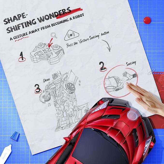 【Smart Gesture Control】 Features advanced gesture recognition technology—simply wave your hand to command transformations. You can also switch between car and robot modes with one easy button press for intuitive and exciting play.