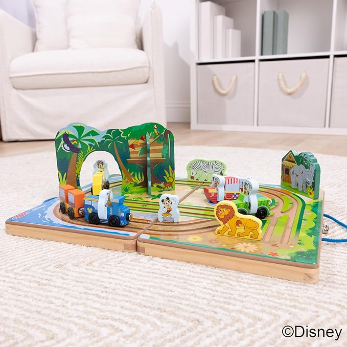 Melissa & Doug Disney Take-Along Safari Adventure Wooden Play Set with Built-in Tracks – 20 Pieces | Mickey Mouse, Minnie, Wooden Toy for Boys and for Girls 3+ - FSC Certified