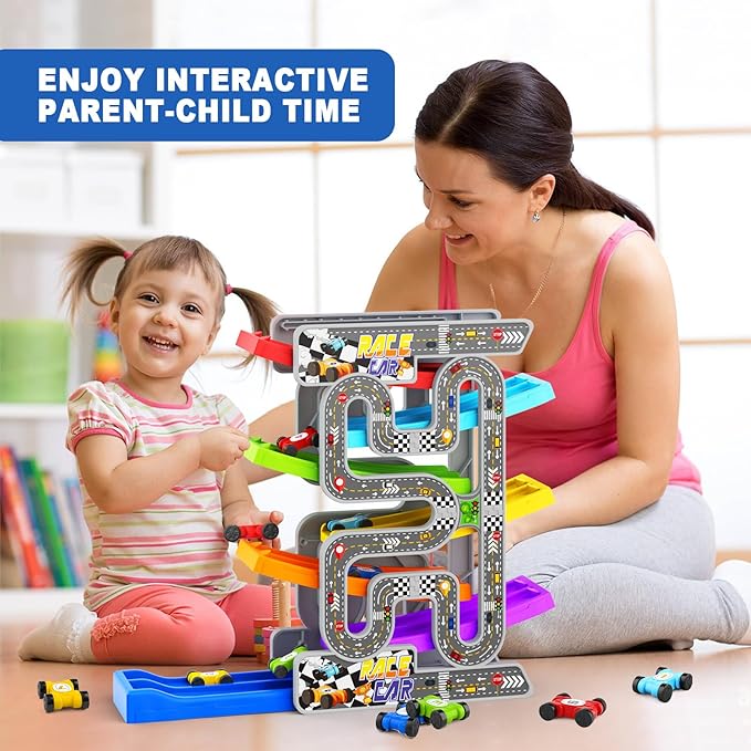 EDUCATIONAL LEARNING TOY: Playing with our baby toy helps improve children's attention span and encourages the development of hand-eye coordination, fine motor skills, and visual tracking ability. While running colorful cars with number stickers, kids also learn to recognize colors and numbers. The ideal developmental toys for ages 2-4 boys and girls.
