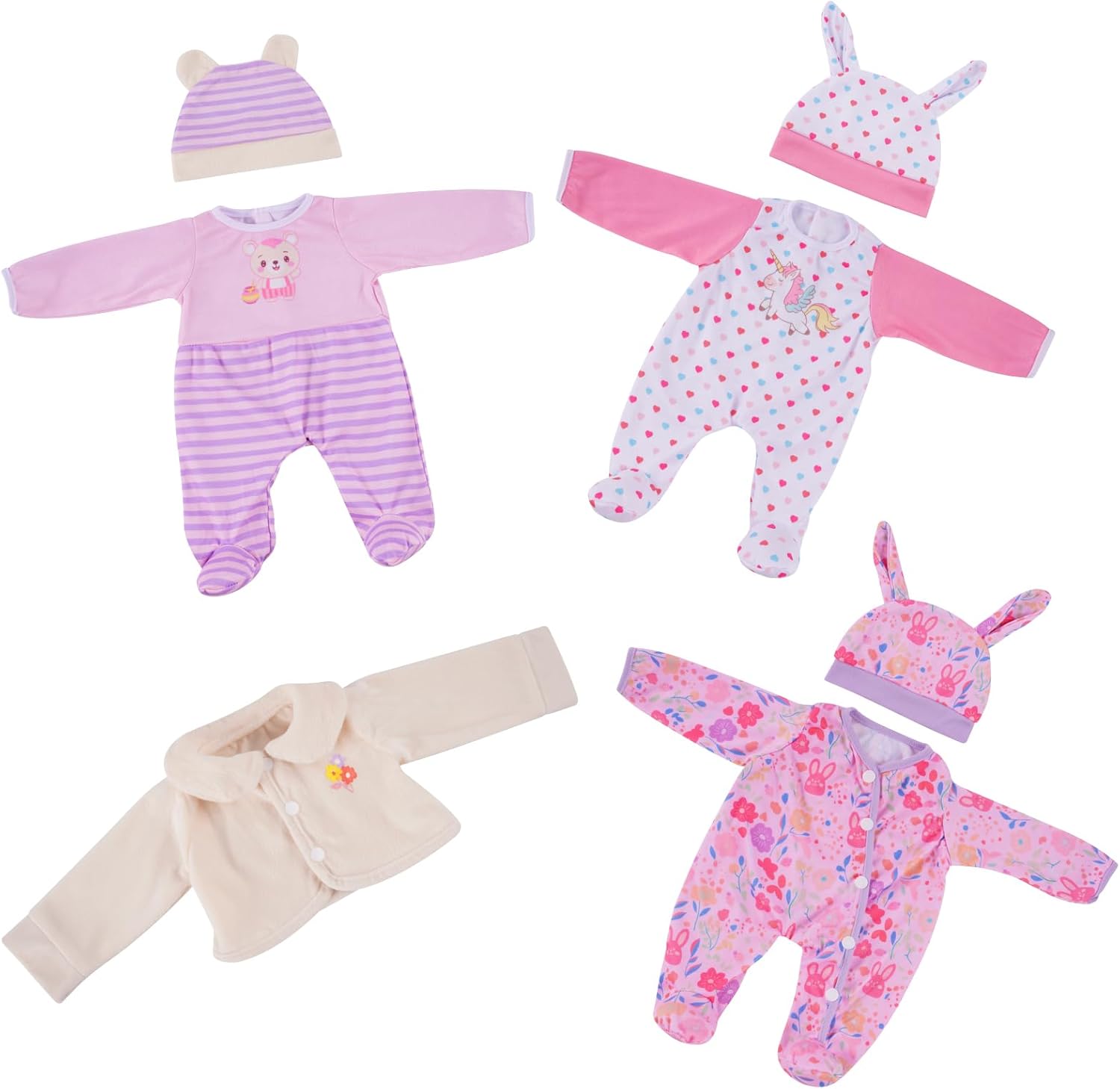 PACKAGE INCLUDE - Our 7 pcs reborn baby dolls clothes set comes with 3 onesies, 3 hats and a coat. ATTENTION: Doll is NOT included.